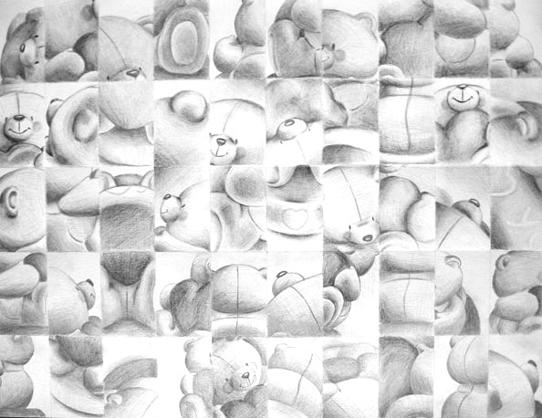 Onderwerp Eigen voorwerp/object meenemen. Op de 3 vellen A4 papier staan totaal 50 vakken ( ieder vakje is 5 x5cm). In ieder vak dient een andere tekening gemaakt te worden van hetzelfde object.(let op neem een uitdagend object. niet een telefoon of laptop etc)